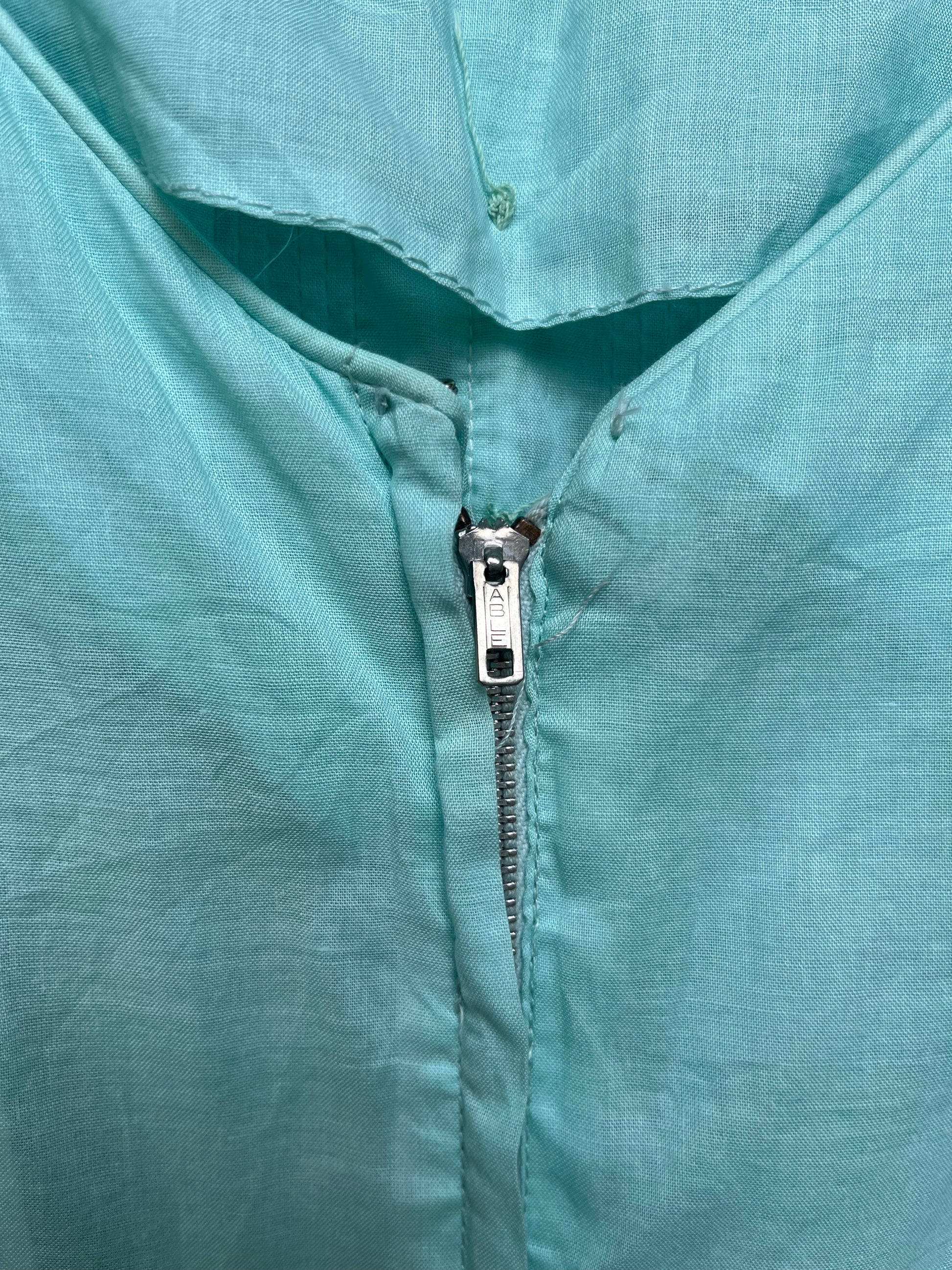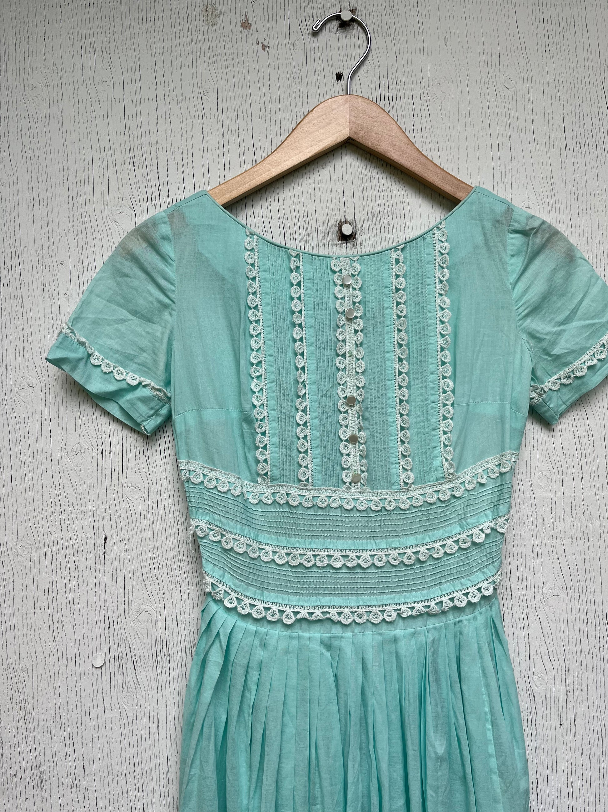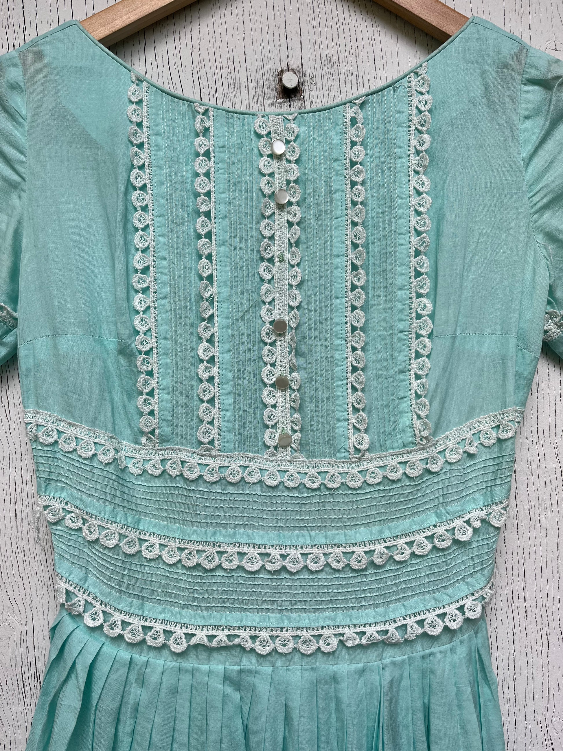 1960s - Mint Green Lace Trim Short Sleeve Dress