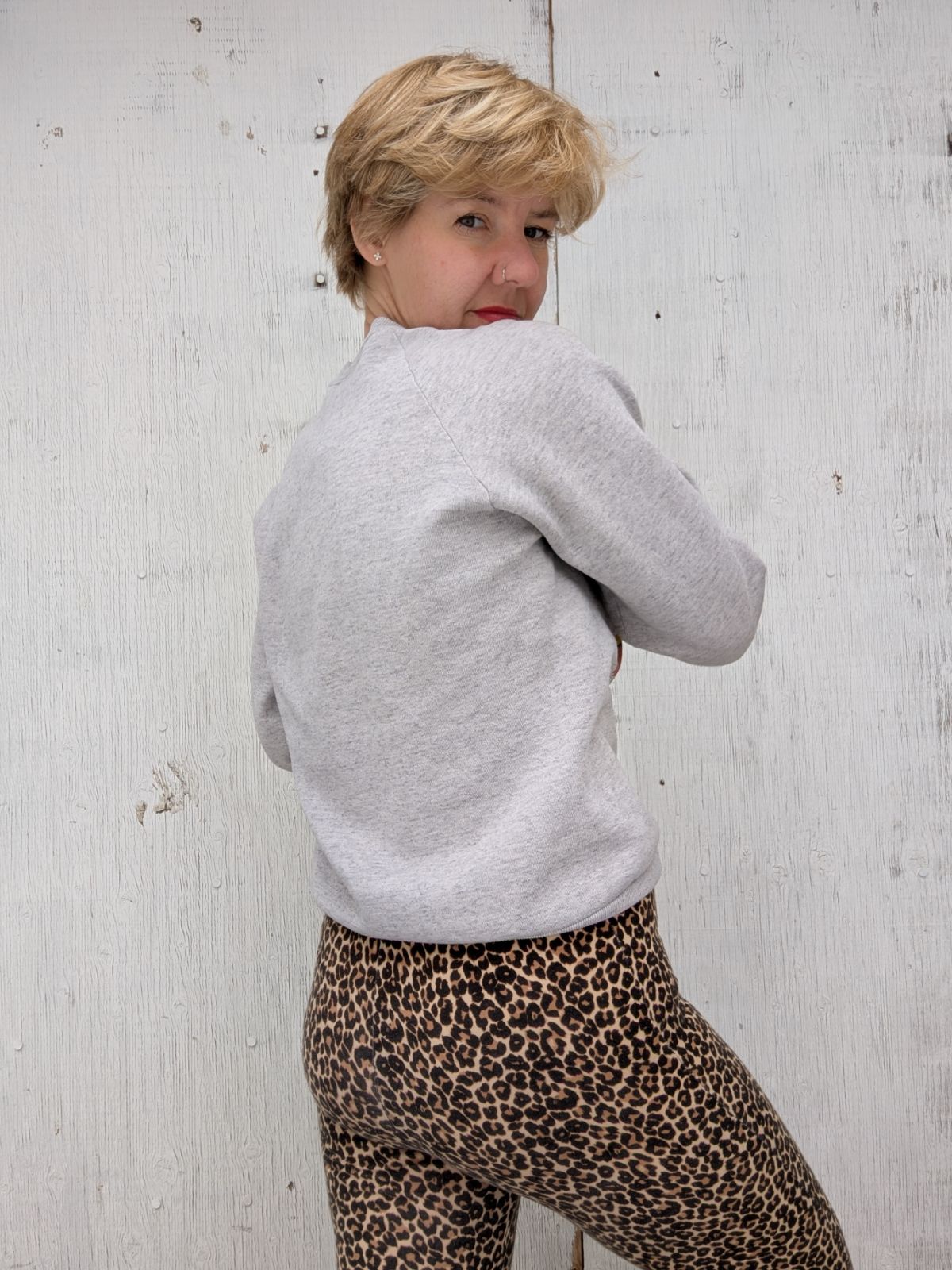 A true slam dunk from the golden age of basketball! Printed by Air Waves on a cozy grey Jerzees sweatshirt, it's got that perfect vintage look and bold 80s graphic energy. Soft, relaxed and ready for game day or your next thrifted streetwear fit. Ribbed hemlines. Label: Jerzees. Made in the USA. Condition: Good vintage condition. Has minor green paint splotch on the right sleeve.