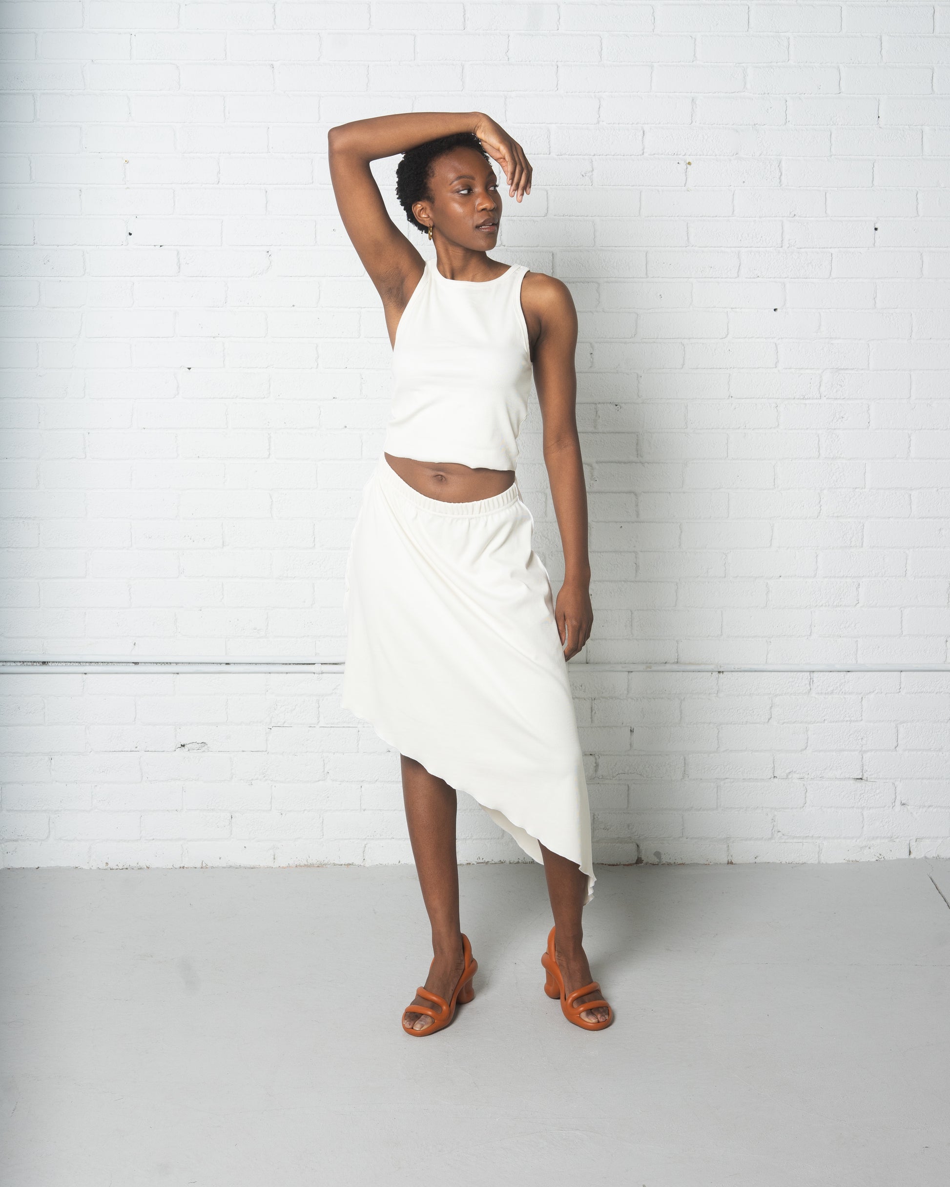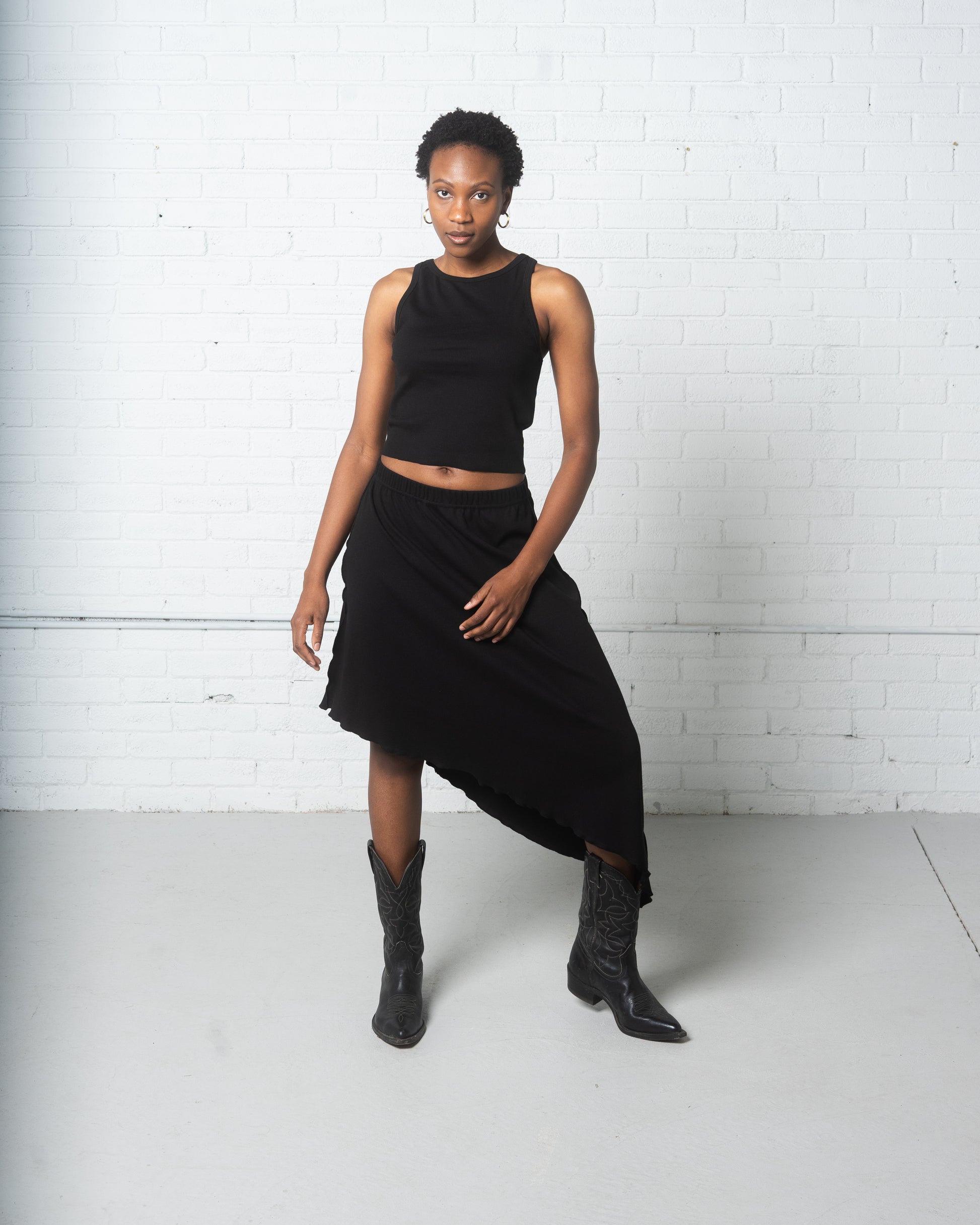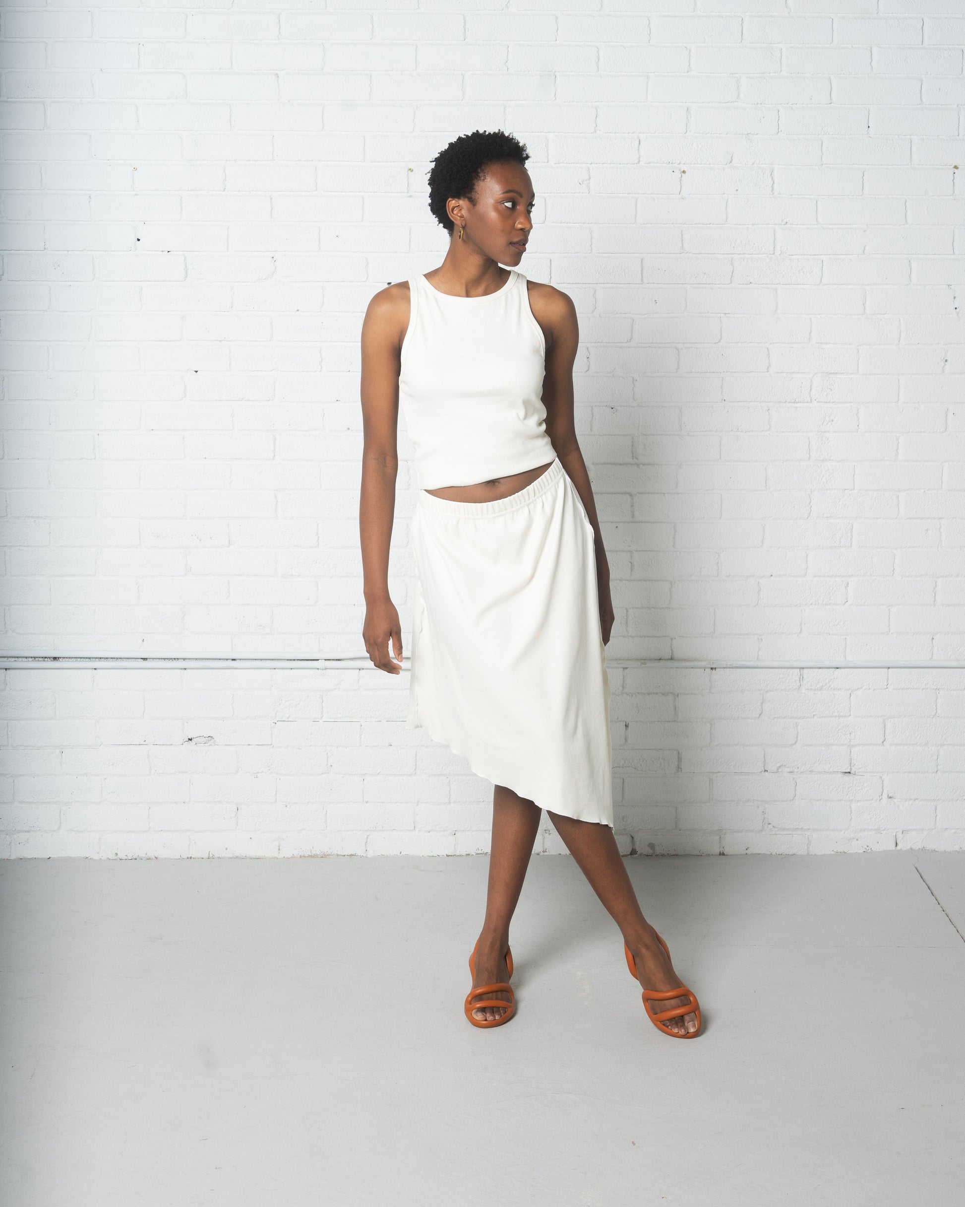 The Recycled Cotton tank top is a super versatile & comfortable piece. It has serged seams and a raw hem with a ton of stretch.