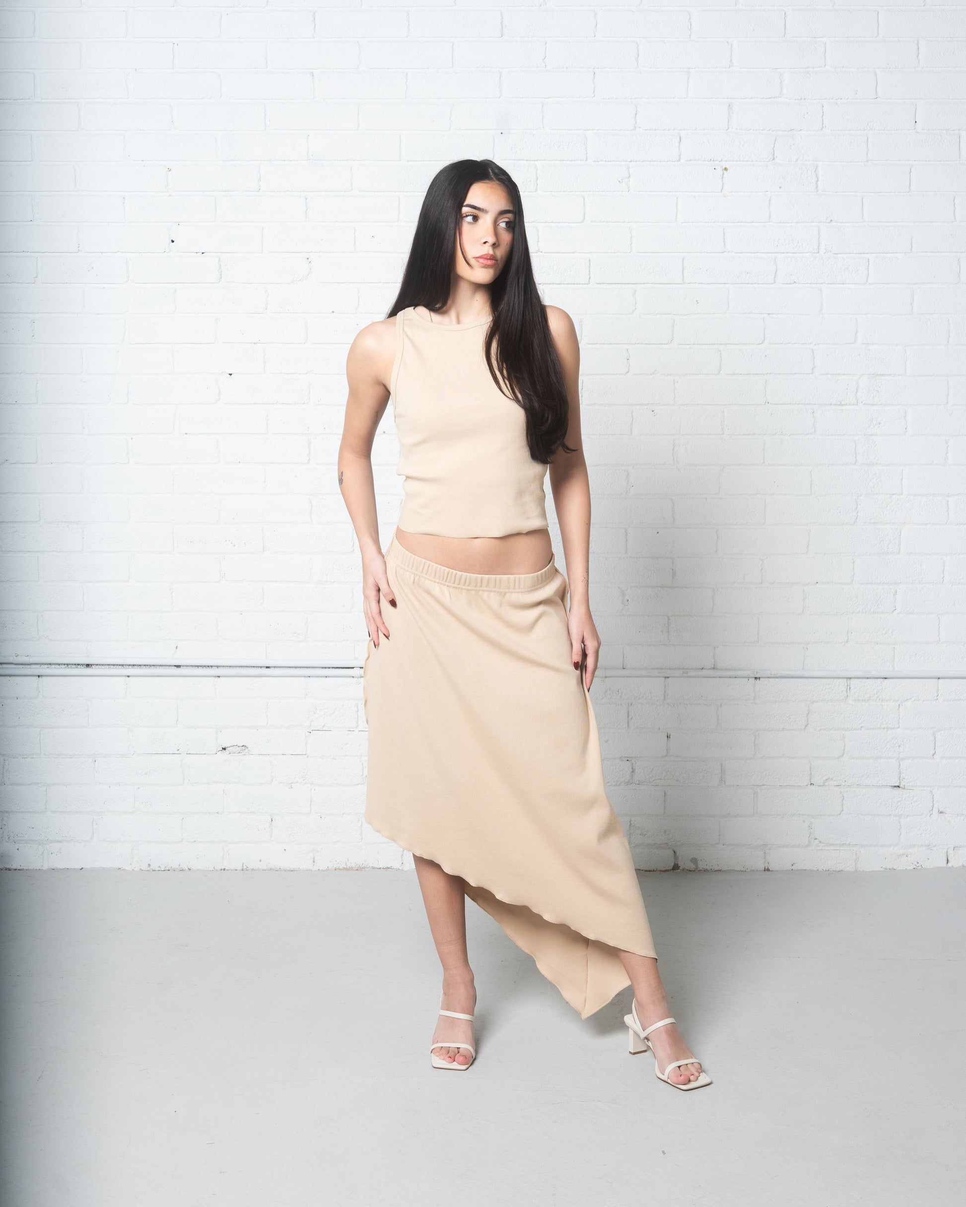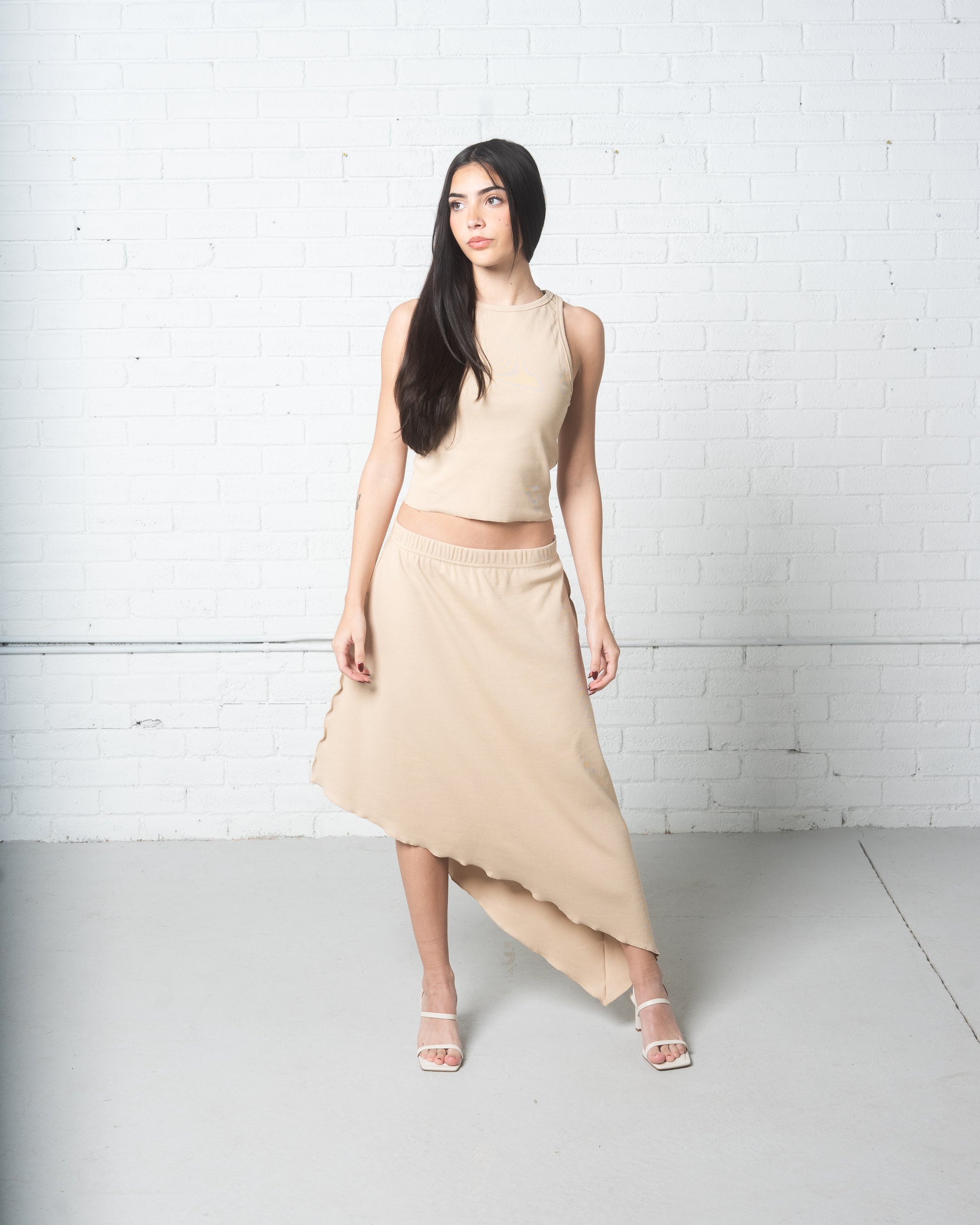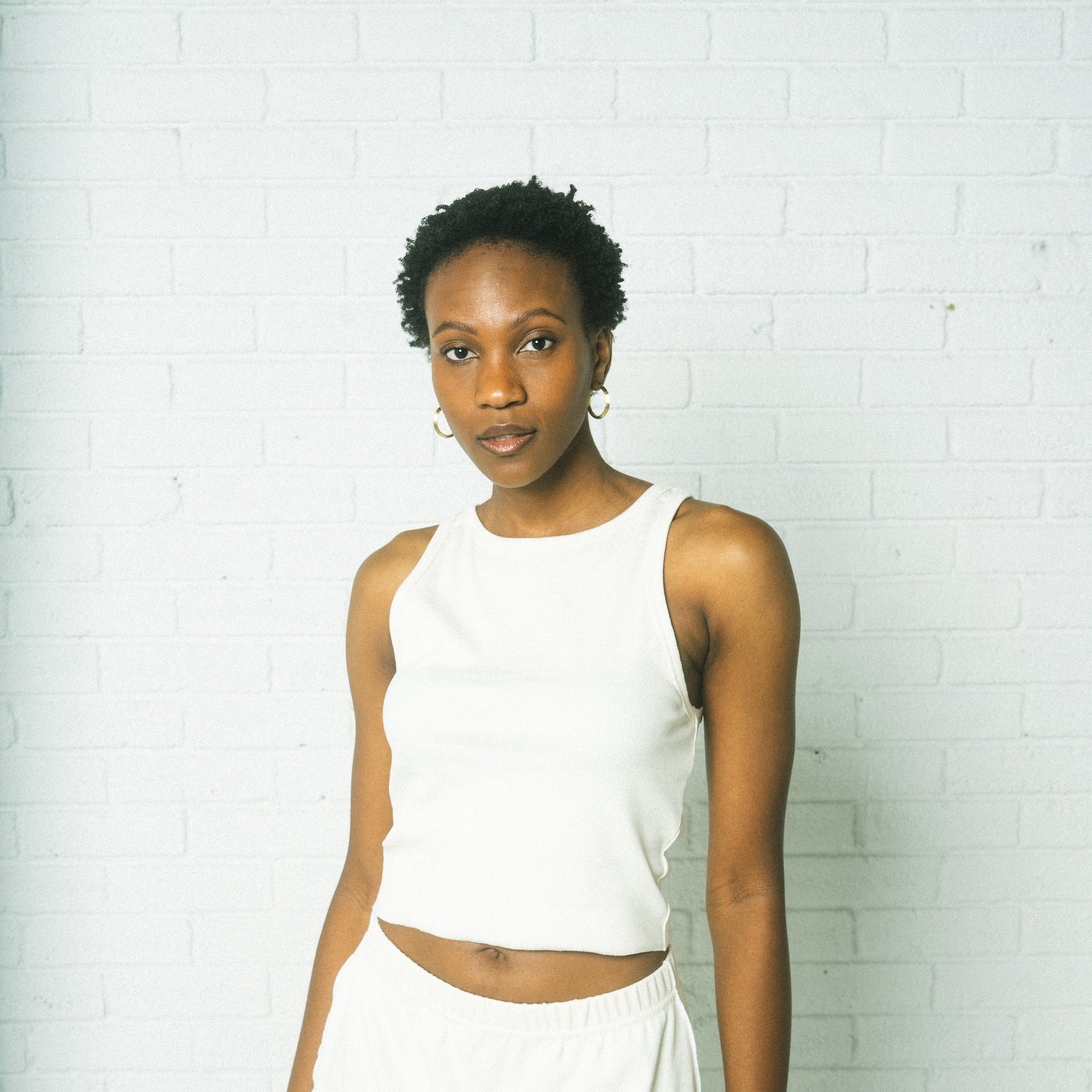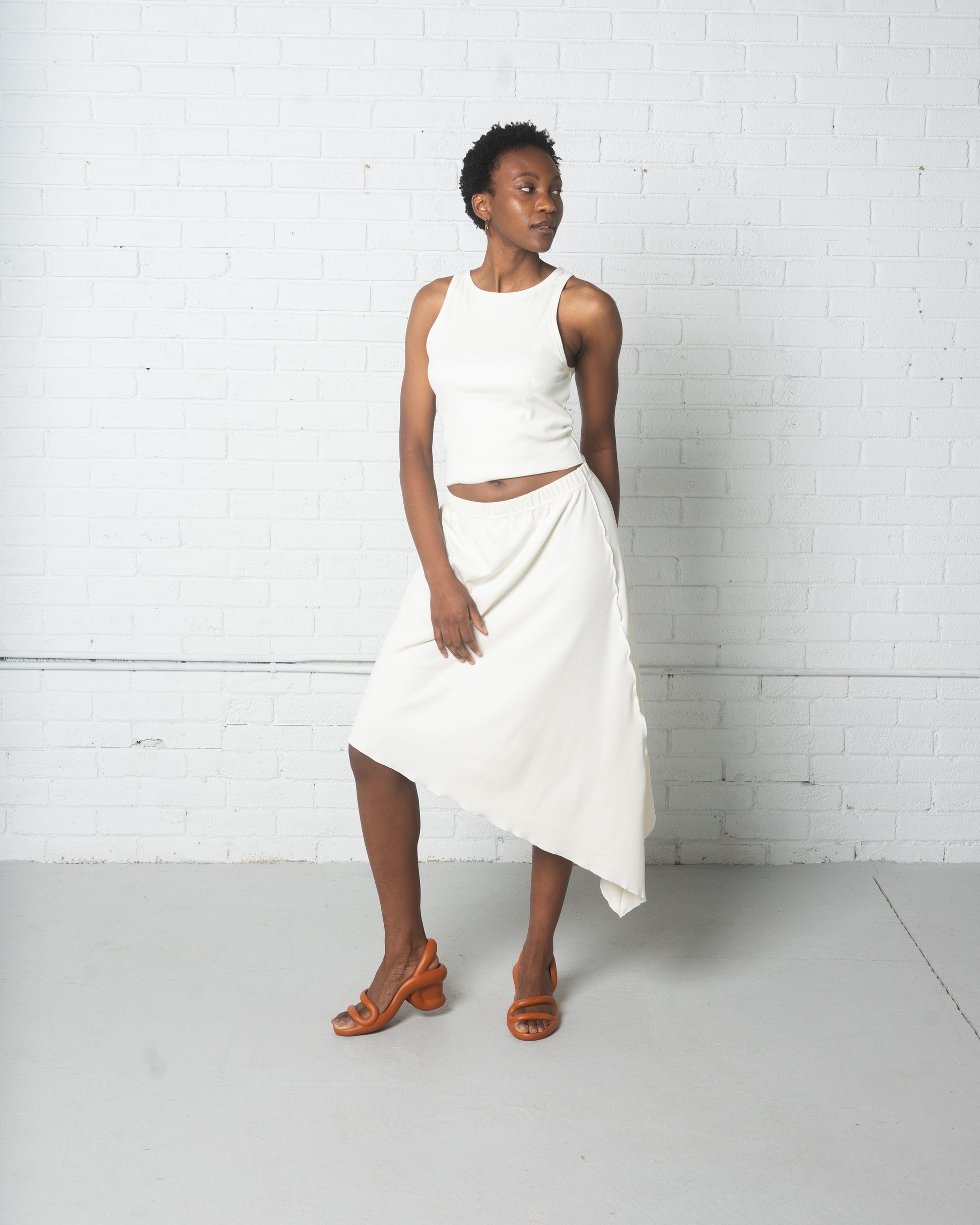 The Recycled Cotton tank top is a super versatile & comfortable piece. It has serged seams and a raw hem with a ton of stretch.