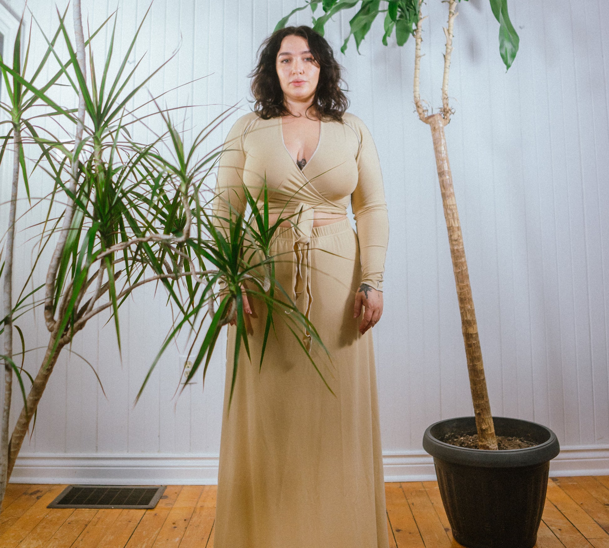 This top comes in two colours; a beautifully rich rust & a grounding beige. These tops can be worn as a set with matching maxi skirts.