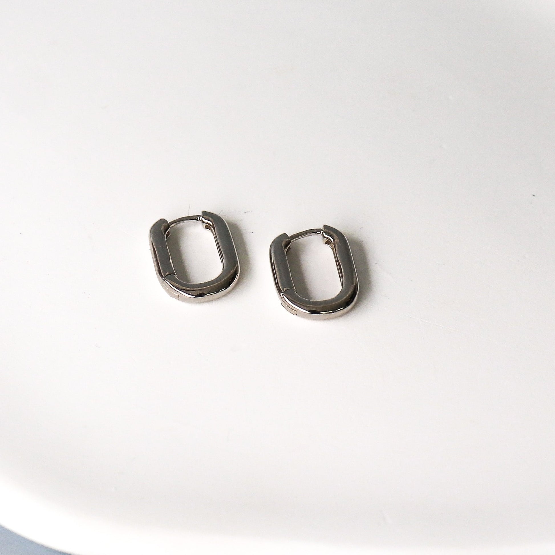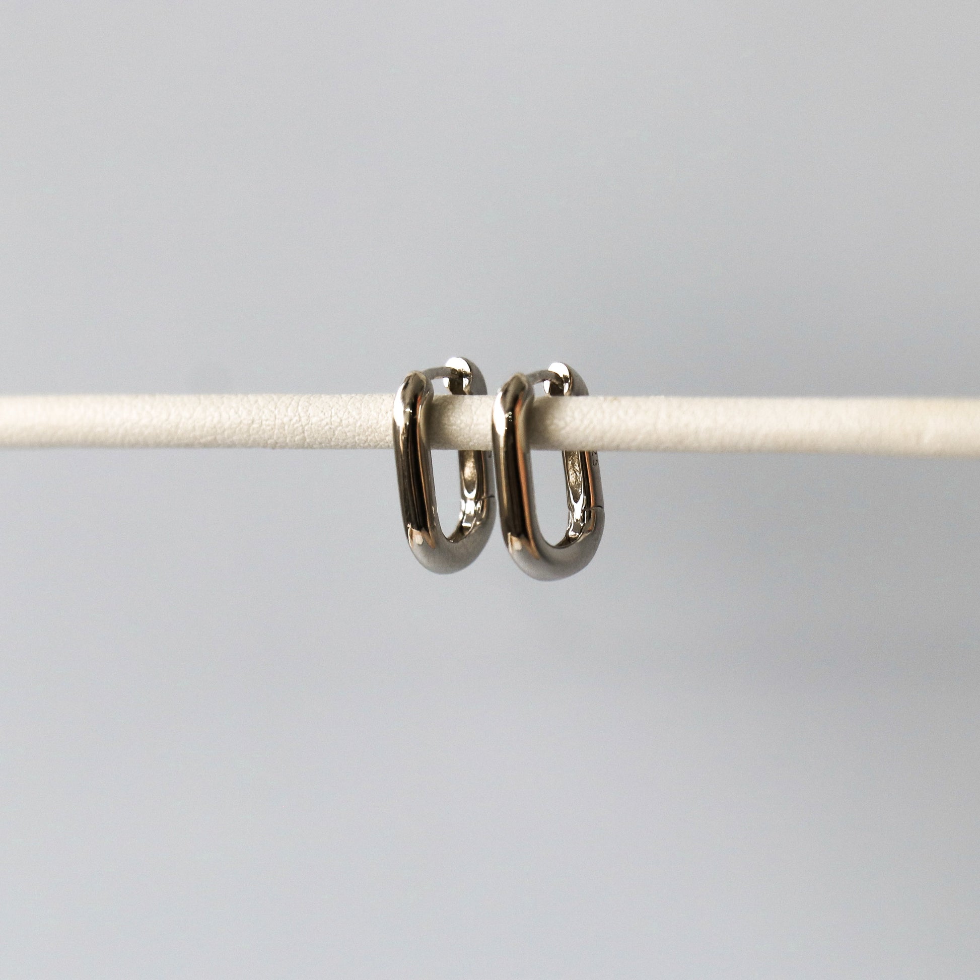 Rectangular hoop earrings with rounded corners. Comfortable and light, great for your first piercing as well as on your second or third for stacking. Horace is a Montreal-based jewelry company.