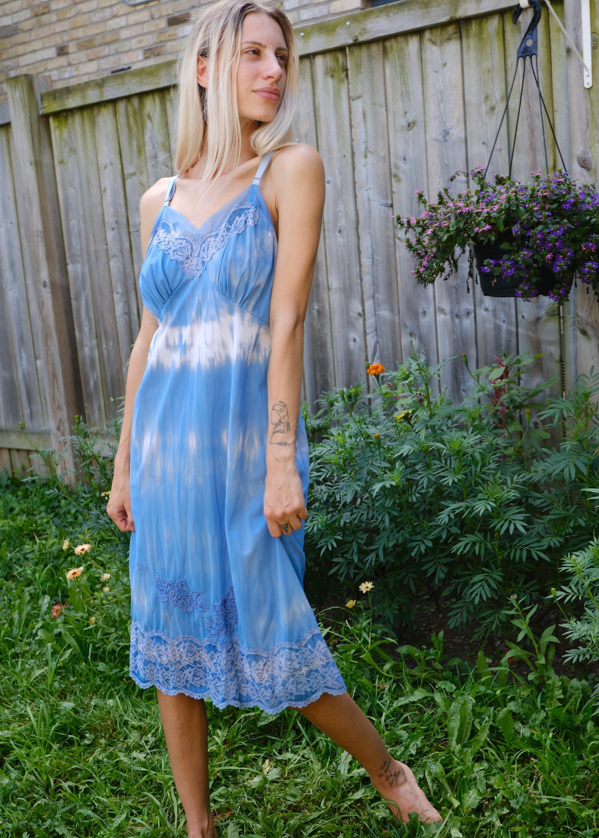 Bring some colour and charm to your wardrobe with the Kasché Design Reworked Tie Dye Vintage Slip Dress. Each slip is hand-dyed by local designer Karen Schaefer in Wortley Village, London, Ontario, using reworked vintage dresses for a sustainable and truly unique piece. No two dresses are the same and each style is one-of-a-kind, with its own colour story and character. These slip dresses are lightweight, comfortable, and can be styled in many ways. Wear solo on hot summer days or layer with a cardigan or denim jacket and boots on cooler days. Available colours and sizes vary.