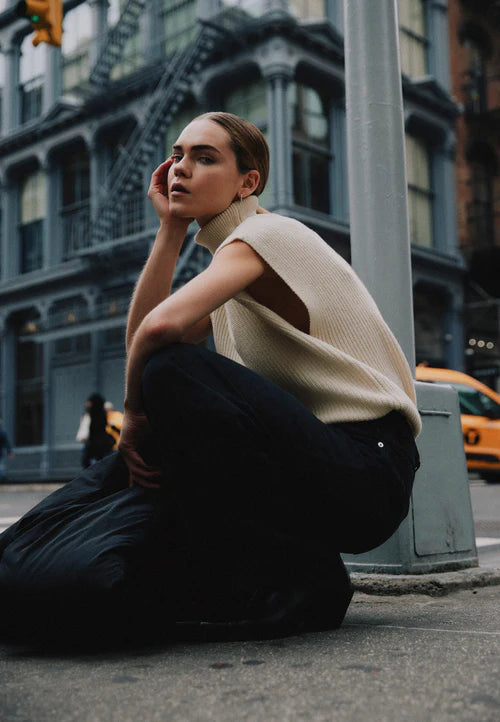 Elevate your layering game with the Naja Knit Vest 9954. Crafted from a premium blend of 80% lambswool and 20% nylon, this vest offers exceptional softness and warmth. The relaxed fit and sleeveless design make it a versatile piece for layering over shirts or under jackets.
