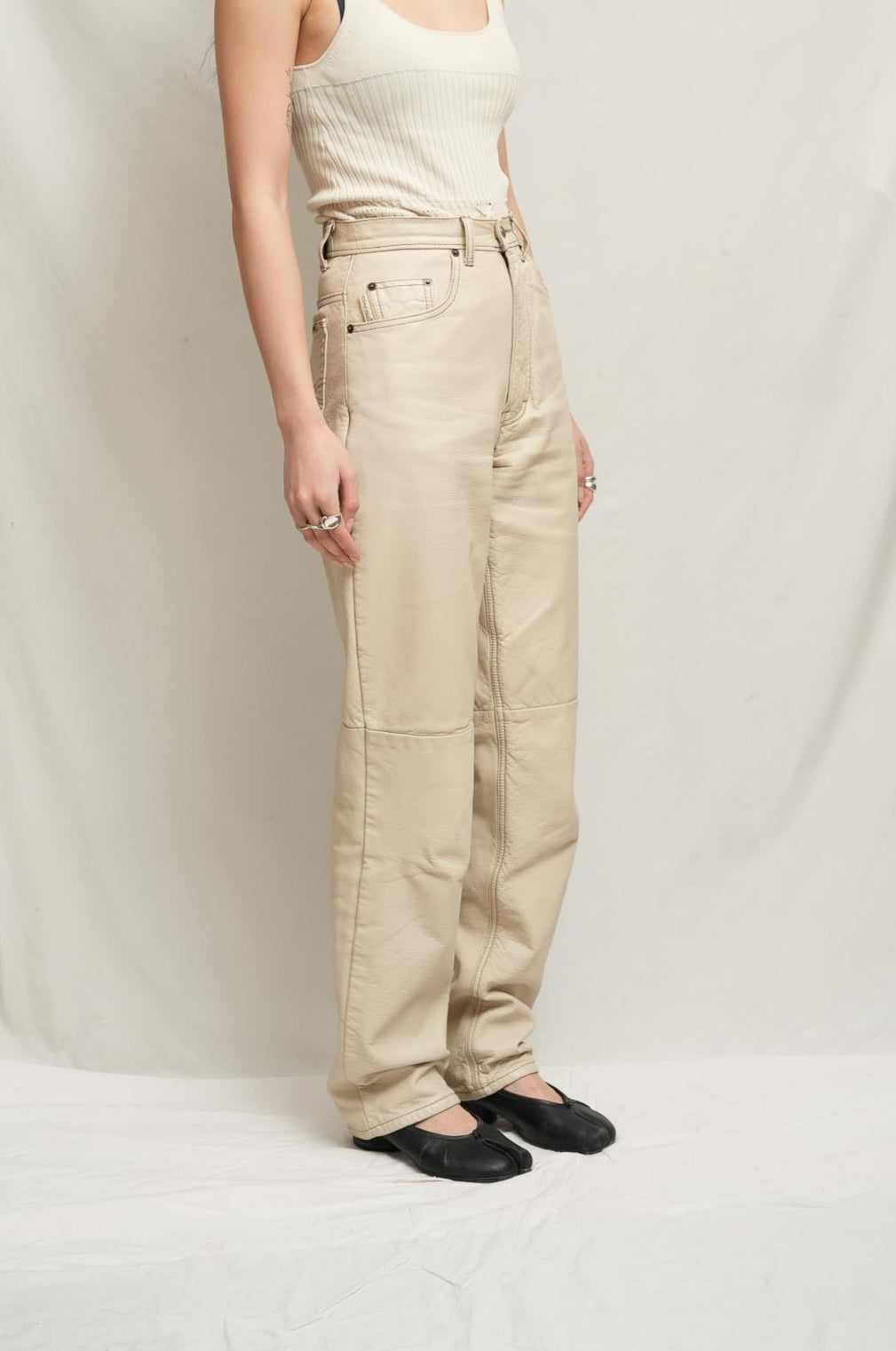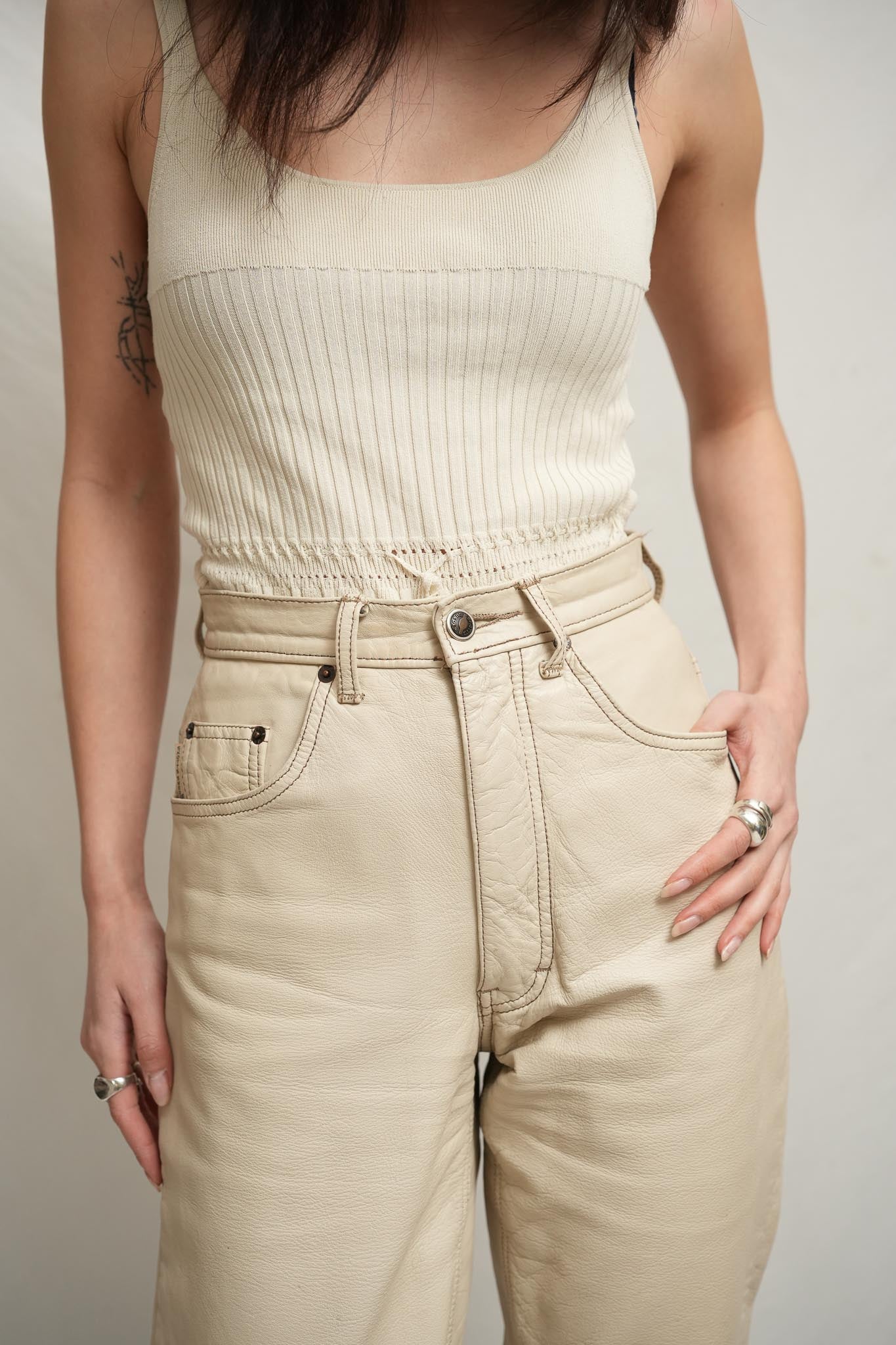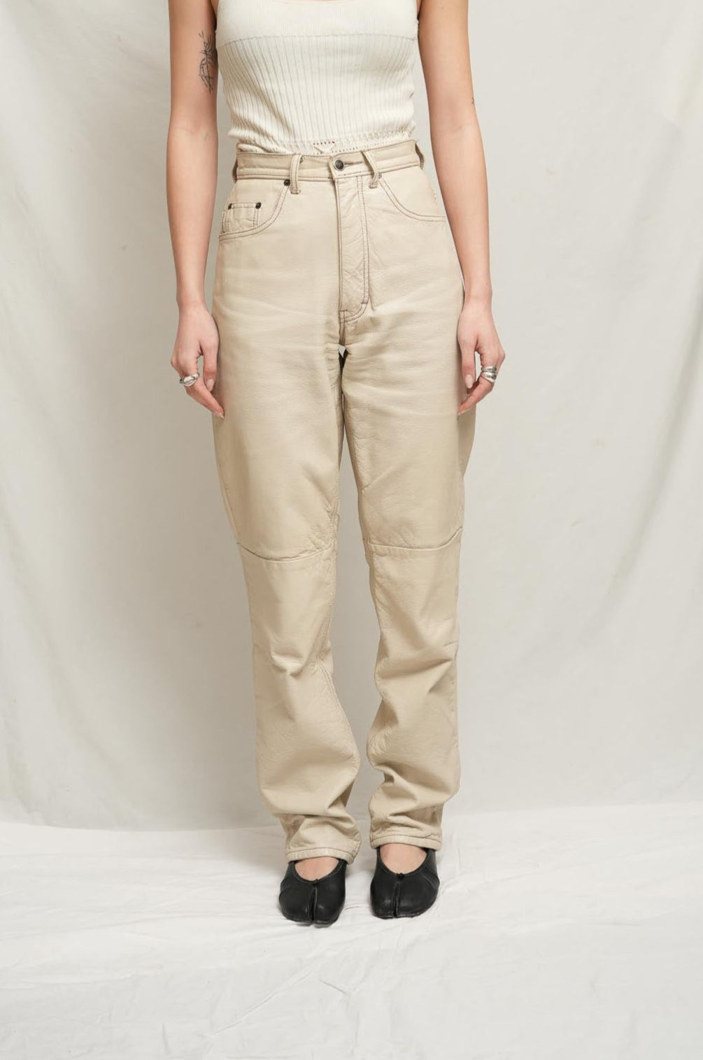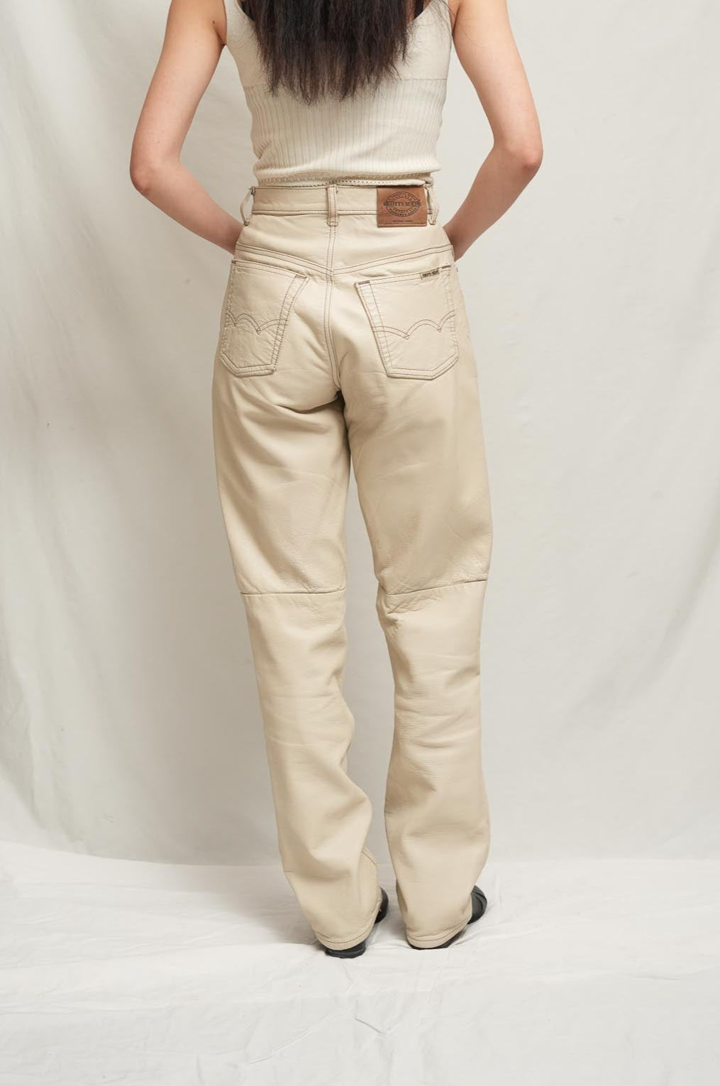 Cotton lined leather pants. Some signs of wear on right side butt