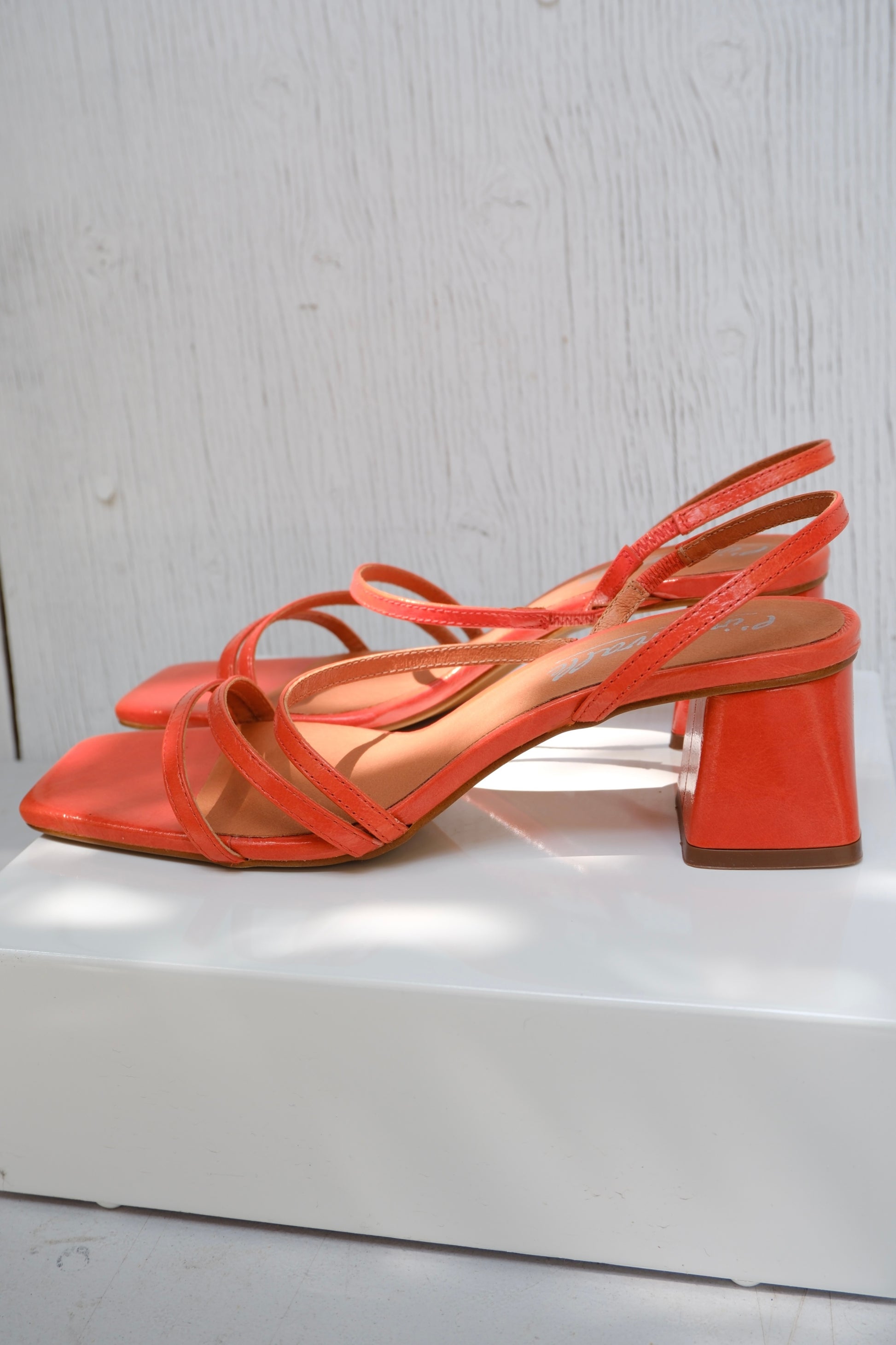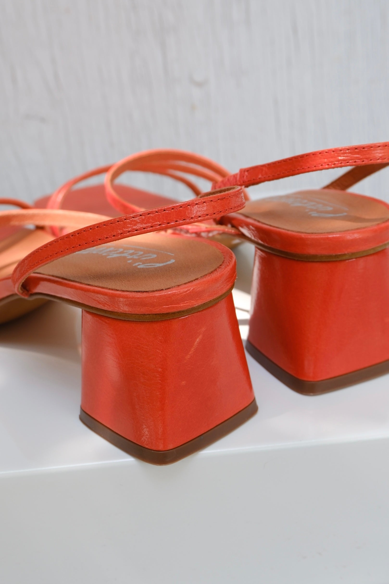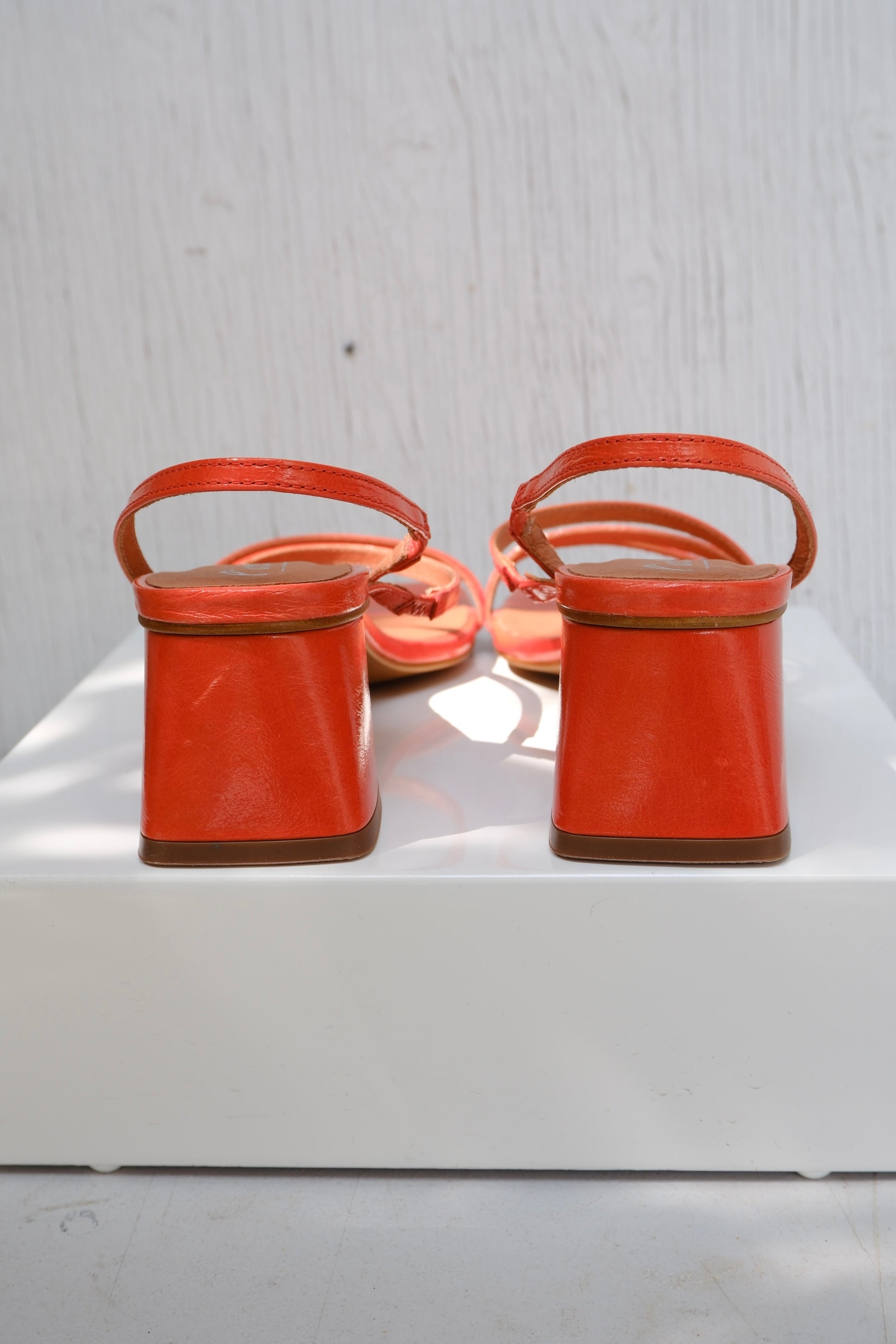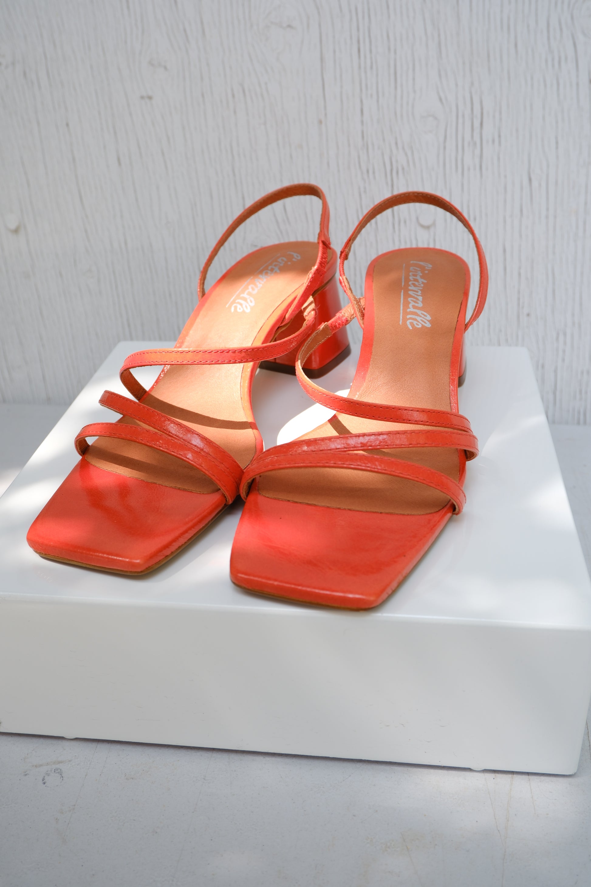 Step into summer with these vintage L’Intervalle square-toed block kitten heels. Made in Spain, these vibrant orange heels have a sleek strappy slip-on design, comfortable low block heel, and chic square toe. The perfect pop of colour for patio dinners, summer weddings, or anywhere you want to turn heads. A pre-loved find in good condition, with small spots on the sole and minor scuffs on the heel. Women’s EU 39 (US 8 to 8.5).