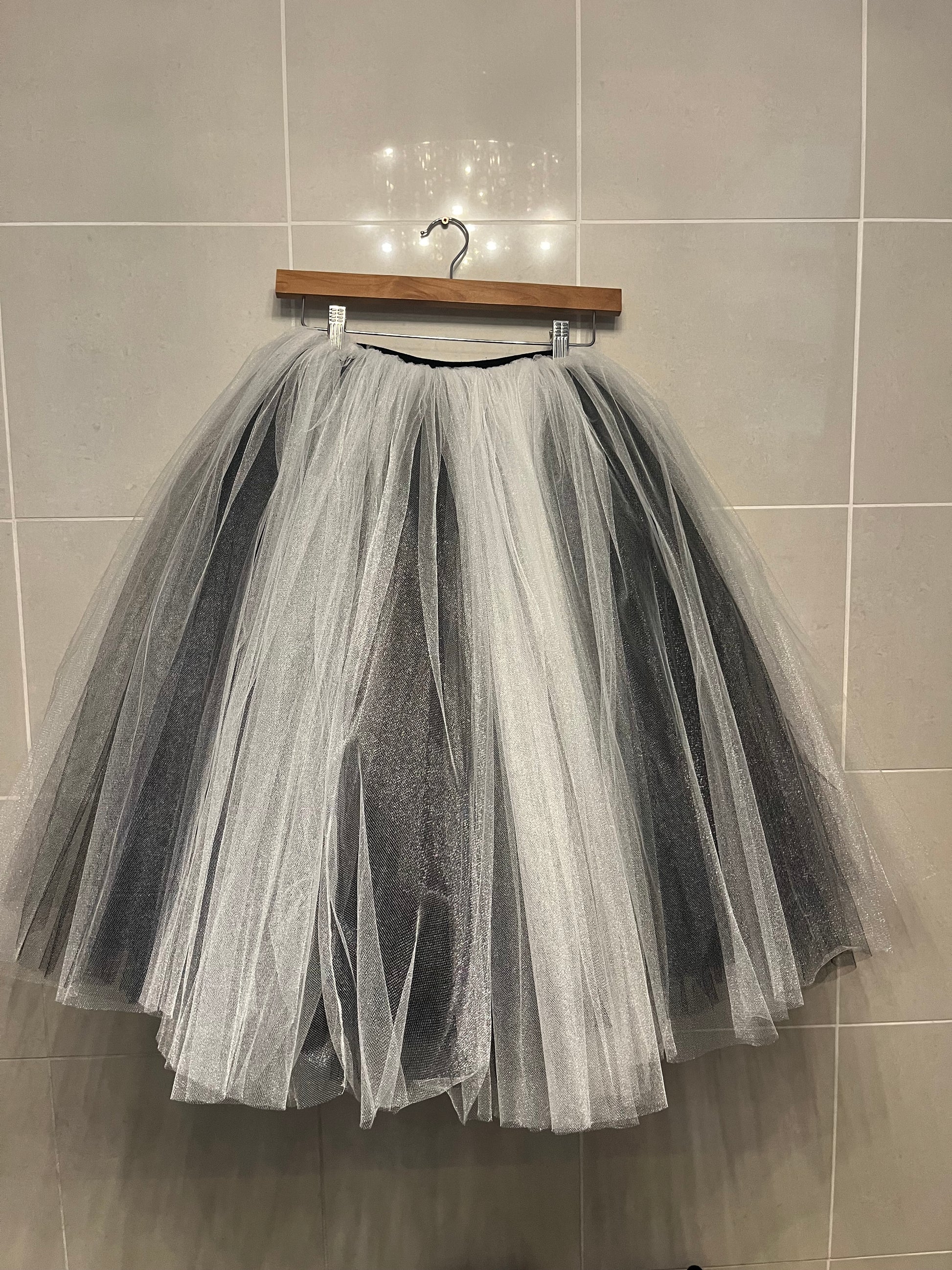 Super full tulle skirt with a nice thick elastic waist. Skirt made in Canada and labelled a medium.